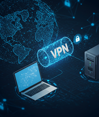 クラウドサービスを通じて 事務所と出張先でつないだりする技術。